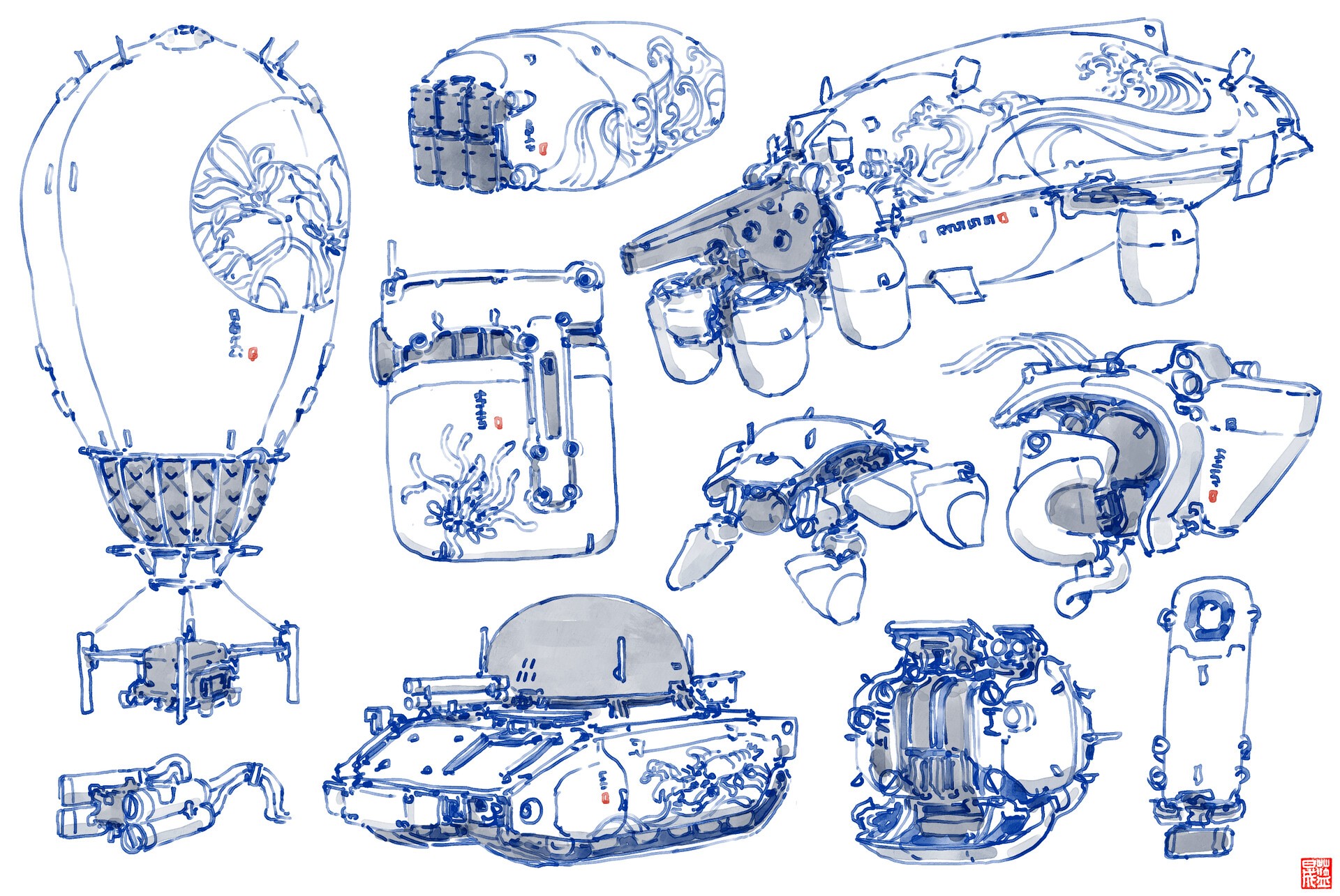 Establish universe rules -> Silhouette ideation -> Resolve functional mechanics -> Final line and material polish.